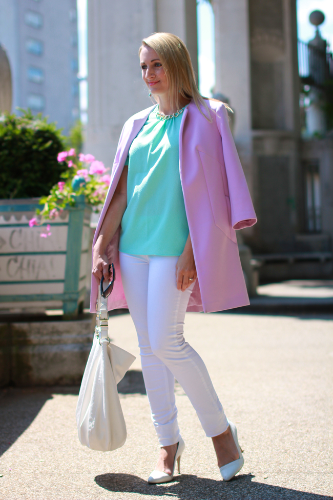Soft pastel & clean white for the office.My last two office looks have been quite striking, therefore I'm presenting you a quite moderate third variant. I love to mix different pastel colors with white, cause this combination is so feminine, timeless and elegant. Ideal colors for a working day to look "well dressed", not flashy & edgy. Unfortunately in Vienna summer still hasn't arrived and in the evening weather can be still quite cold - therefore it's necessary to have a blazer or light coat for a perfect dressed office outfit. And therefore I'm all the more delighted about summery temperatures in Crete, where I'm on holidays since yesterday :-) ... But before I'm showing you some pics & outfits from Crete, I've prepared another "collection" for next week ...
