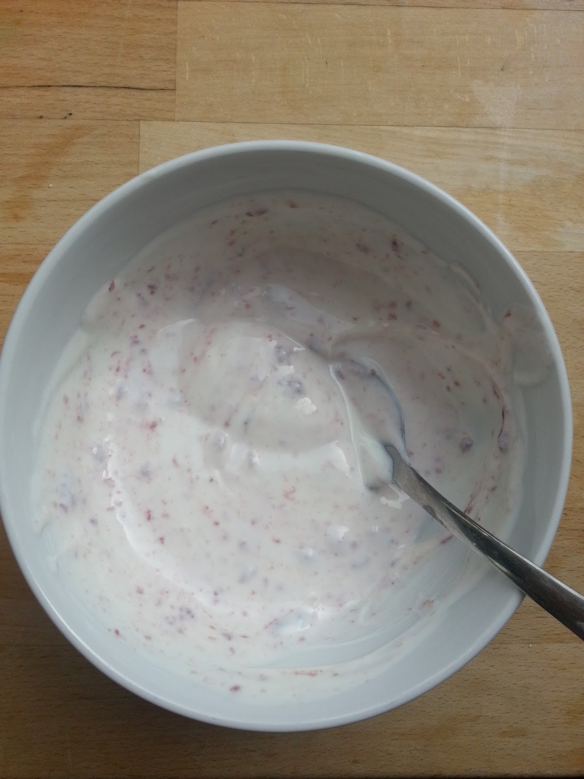 Zum Essen, heute früh gab es Joghurt 1,5% mit Beeren. Ich hab mir diese leicht warm gemacht, war sehr lecker.