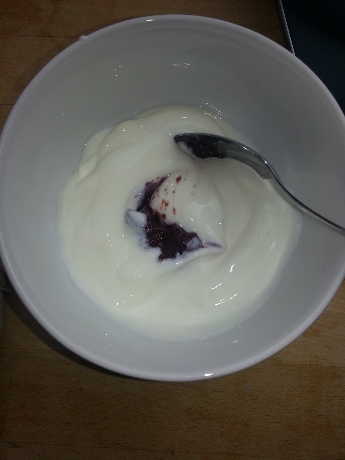 Weiterer Zwischensnack ist dann wieder Joghurt mit einem Klecks Marmelade.