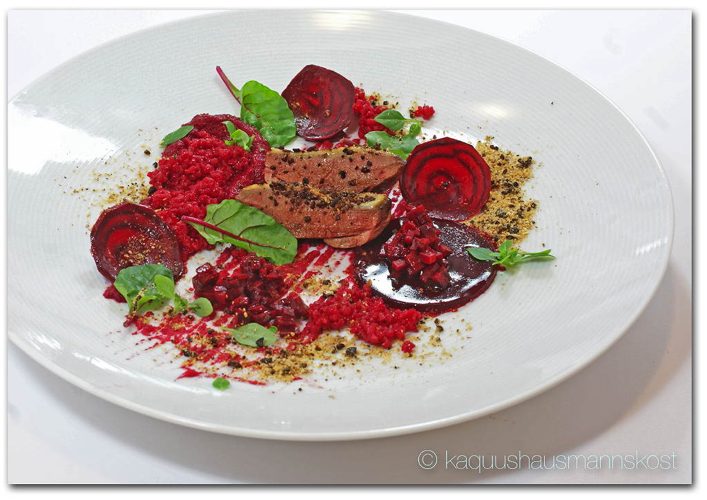 Das Gericht besteht aus folgenden Komponenten:- Rote Bete Gewürzgelee