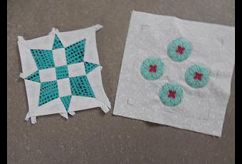 Beide Blöcke wurden von mir komplett von Hand genäht!Links der A 13 wurde über Papier genäht und rechts der B1 ist (logischerweise) appliziert.