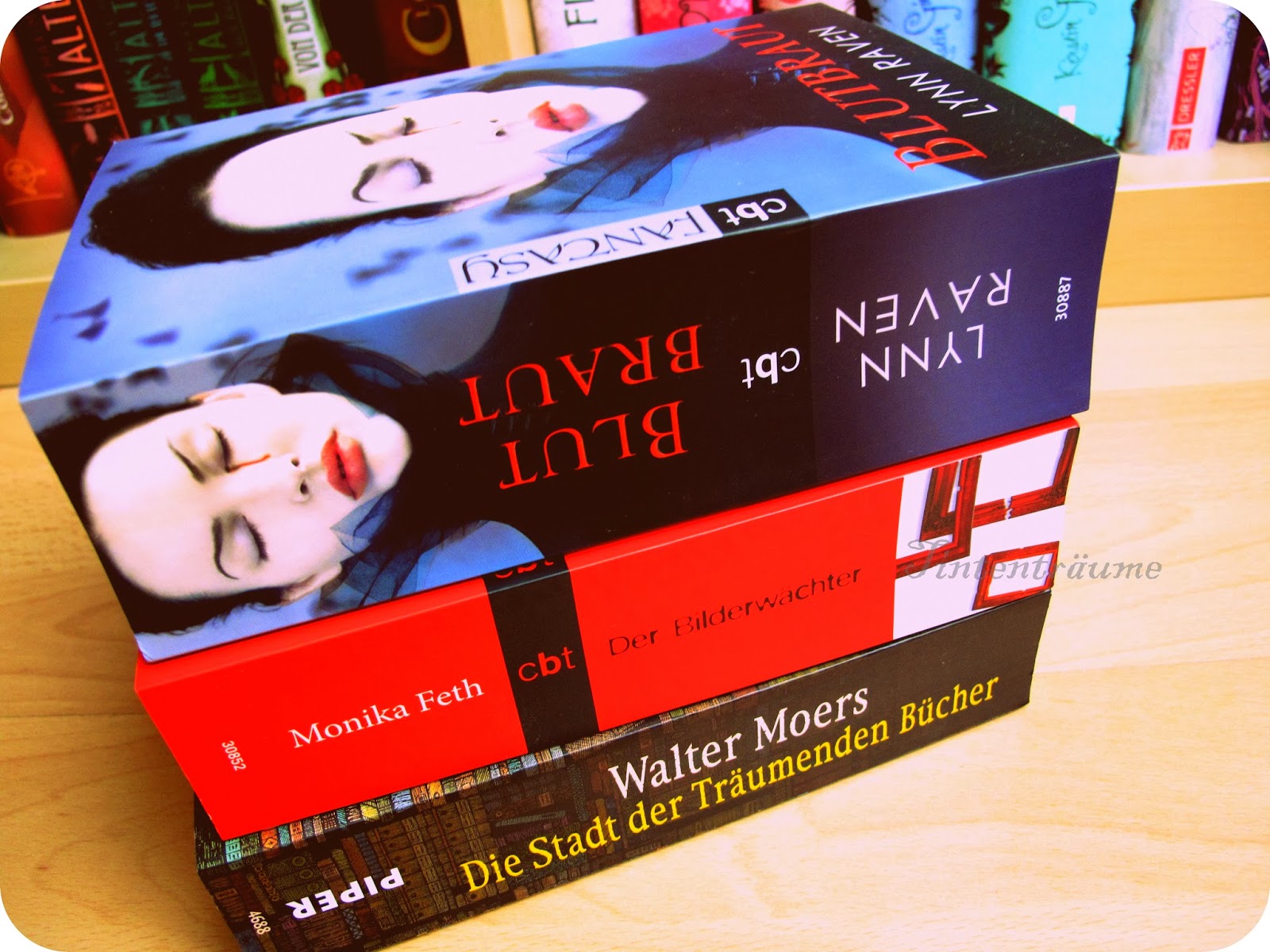 Wenn man von anderen keine Bücher geschenkt bekommt, dann muss man sich eben selbst Geschenke machen. Nach diesem Motto habe ich also gehandelt... Zudem muss ich einfach zugeben, dass ich bei miesem Herbstwetter nirgends lieber Zeit verbringe, als in einer Buchhandlung. Mein SuB hat also Zuwachs bekommen. "Blutbraut" von Lynn Raven, "Der Bilderwächter" von Monika Feth und "Die Stadt der Träumenden Bücher" von Walter Moers, durften bei mir einziehen. Meiner Meinung nach, handelt es sich bei allen Bücher um absolute Herbst- und Winterbücher. Deshalb freue ich mich schon riesig aufs Lesen! Ich lese:![[Time Travel] Überraschungen, Überraschungen! [Time Travel] Überraschungen, Überraschungen!](http://m3.paperblog.com/i/69/690988/time-travel-uberraschungen-uberraschungen-L-6wP8oH.jpeg)