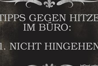 Auf Facebook teilen Vorige Folgende TIPPS GEGEN HITZE IM BÜRO: 1. NICHT HINGEHEN Autor des Artikels : istdaslustig Zum Original-Artikel TIPPS GEGEN HITZE IM BÜRO: 1. NICHT HINGEHEN Hier geht es zum Artikel Mehr Lustiges auf www.istdaslustig.de Auf Facebook teilen Vorige Folgende Das könnte Ihnen gefallen Mehr