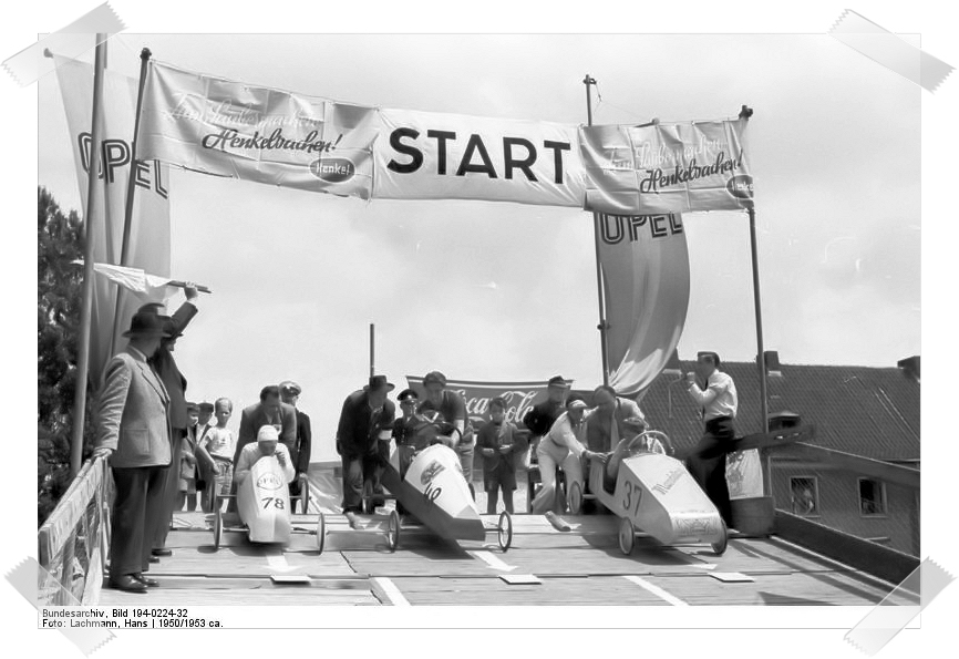 Der Beginn einer langen Erfolgsgeschichte. Noch heute werden Weltmeisterschaften im Seifenkisten-Rennen abgehalten. Wenn auch die eigentlichen fahrbaren Untersätze sich doch etwas gewandelt haben dürften – Seifenkisten im engeren Sinne werden sicherlich nicht mehr für deren Herstellung verwendet.