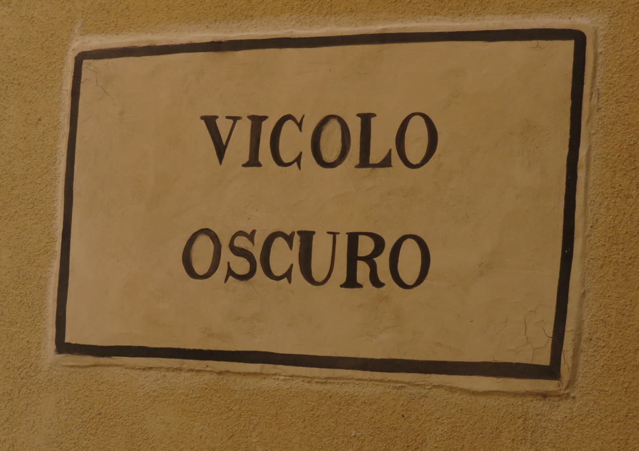 Durch diese dunkle Gasse ("vicolo oscuro") muss er kommen?