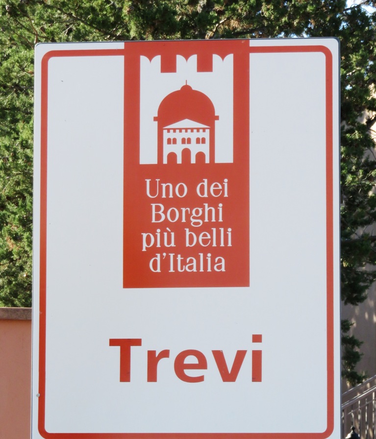 Mit dem unten abgebildeten Ortsschild rühmt sich Trevi scheinbar, eines der schönsten Städtchen Italiens zu sein. Im strengen Sinne wird damit aber lediglich die Mitgliedschaft in einer touristischen Vereinigung mit der Bezeichnung "I Borghi più belli d’Italia" kundgetan.