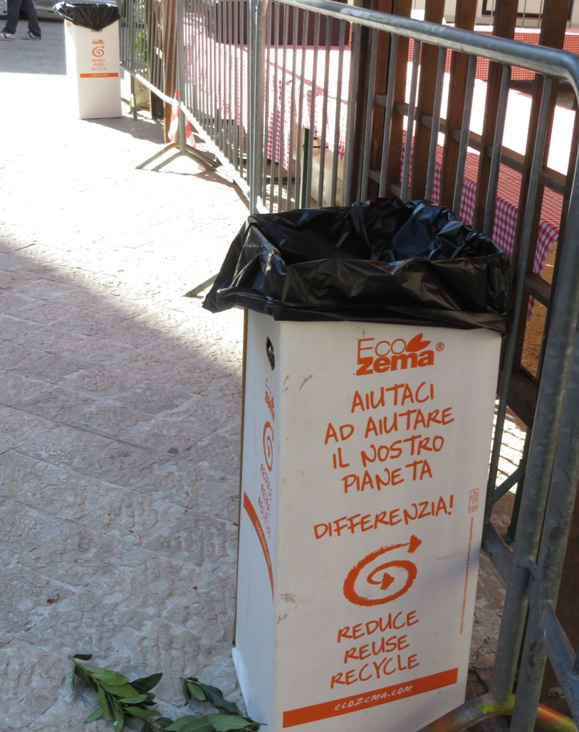 Irriger Weise bilden wir Deutschen uns ein, das Umweltbewusstsein ganz besonders zu pflegen. Doch auch in Italien ist man z. B. für die Abfallproblematik sensibilisiert; hier gibt es sogar Abfallkörbe aus Pappe: