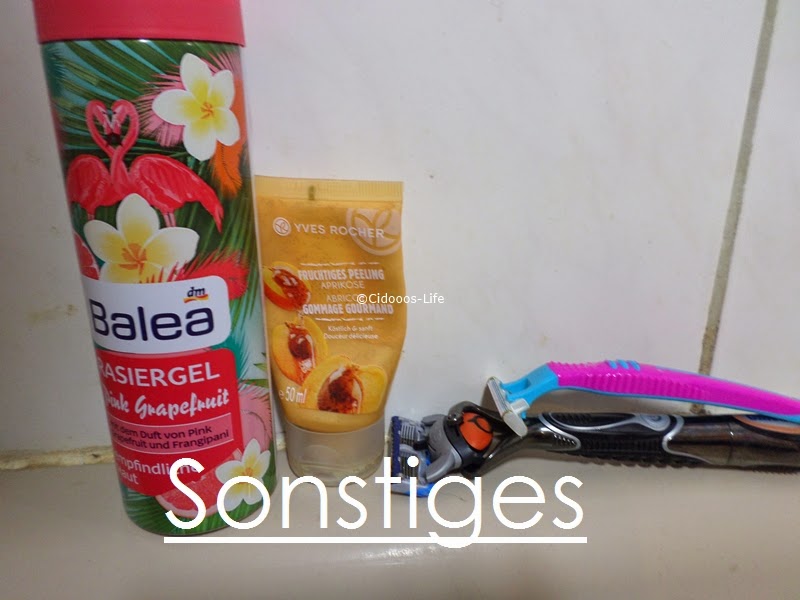 Aktuell benutze ich das Rasiergel von Pink Grapefruit, dazu den Balea Einwegrasierer aus der vorletzten LE. Darunter habe ich einen von Gilette*, den verwende ich aber nicht mehr wirklich, da die Klinge stumpf ist.Das Yves Rocher Gesichtspeeling versuche ich einmal die Woche zu verwenden, vergesse es aber meistens :D Find's nicht soo gut.*PR-SamplesDas waren meine Produkte unter der Dusche ♥ Was benutzt ihr so unter der Dusche?