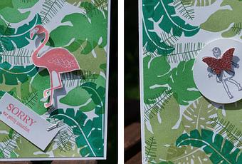 Im ersten Kurs haben wir Feen fliegen lassen, im zweiten Kurs kamen die Flamingos dran, allerdings rund ausgestanzt und nochmal mit Blättern versehen, und im dritten Kurs habe ich dann, aufgrund des Altersunterschieds beide Varianten angeboten. Da war ich überrascht, dass die jüngeren Mädls sich für den Flamingo und die meisten älteren sich für die Fee entschieden. Hätte ich genau anders herum vermutet...