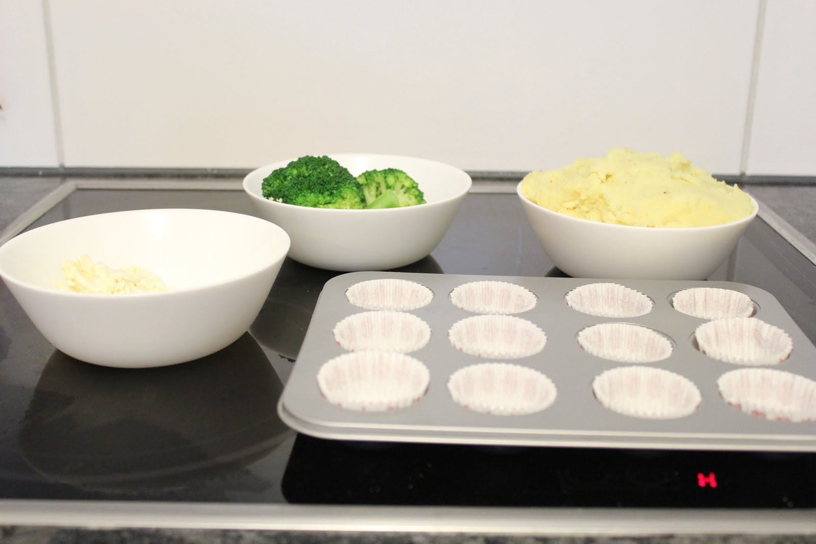 - Kartoffelpüree z.b. von IKEA- Brokkoli oder anderes Gemüse- (veganer) Käse- Muffin Papierförmchen- Muffinform