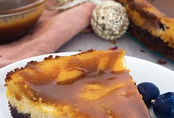 Käsekuchen mit Brownie Boden und Salzkaramell