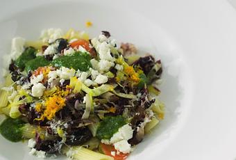 Pasta Gemüse Walnuss-Pesto Schafskäse