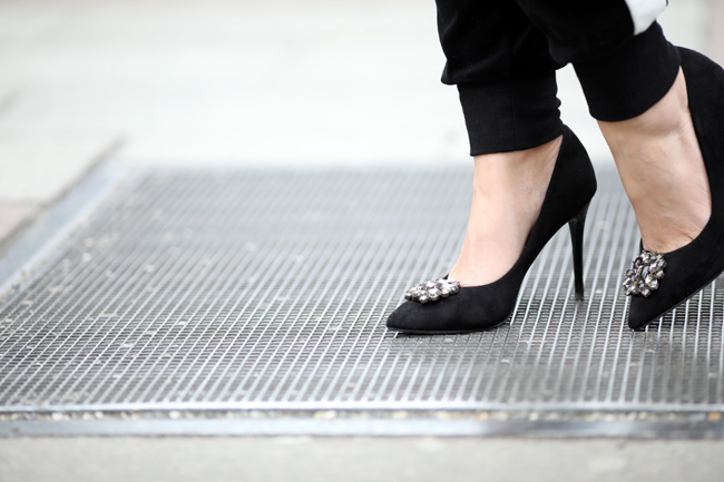 In der aktuellen H/W-Saison feiert Samt ein fulminantes Comeback. In Form von Kleidern, Hosen, Blazern, Taschen oder Schuhen - von elegant, über sportlich bis zu romantisch: Samt zeigt sich so vielseitig einsetzbar wie nie. Und auch ich habe meine Liebe zu Samt wieder entdeckt und bereits einige neue Schätze in meinem Ankleidezimmer. Aktueller & heiß geliebter Neuzugang: Diese samtenen Track pants, die ich im zweiten Look meiner dieswöchigen "black collection" mit meinem ca. zehn (!) Jahre alten Samtblazer kombiniere. Dazu eine Schuppenbluse und elegante High Heels - fertig ist ein trendiger, aber dennoch erwachsener & eleganter Look. - Wie gefällt Euch mein OOTD? Und was sagt ihr zum Trendmaterial Samt? velvet track pants - Forever 21 / blouse - Mango / velvet blazer - Zara / high heels - Schustermann & Borenstein / bag - Essentiel Antwerplocation - Ringstraßengalerien