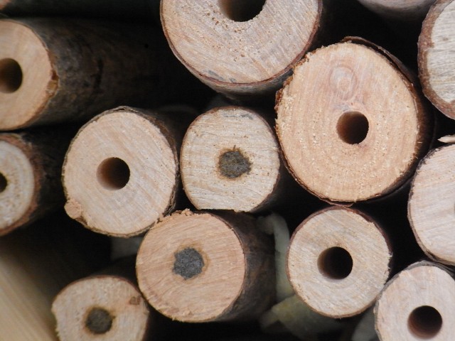 Joah und dann haben wir neue Mitbewohner. Im Insektenhotel ist irgendetwas eingezogen. Keine Ahnung was genau, aber einige Appartementtüren sind seit kurzem verschlossen. Um es besser sehen erkennen zu können, habe ich die verschlossenen Türen auf dem oberen Bild mal eingekreist. Im unteren Bild sieht man es dann eh so, weil ich sehr nah ran gezoomt habe.