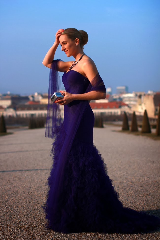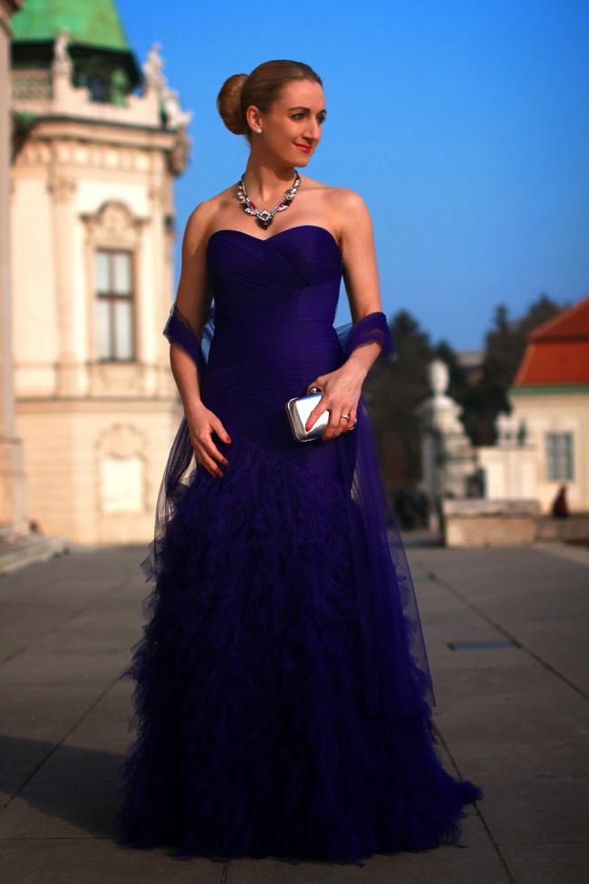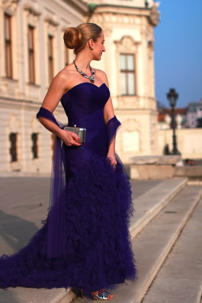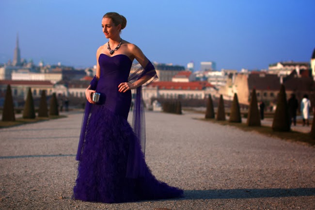 Der 58. Wiener Opernball.Am Donnerstag Abend fand zum 58. Mal der Wiener Opernball in der Staatsoper statt - und zum zweiten Mal mit mir. Damit ich einen standesgemäßen Auftritt (Dresscode für Damen war "großes, langes Abendkleid" und für Herren "schwarzer Frack") am (Tanz)parkett hinlegen konnte, hatte ich die Ehre, dass mich zwei meiner liebsten österreichischen Brands für elegante Anlässe ausstatteten: Das seit 4 Generationen bestehende Wiener Traditionsunternehmen für Braut- & Abendmode und das seit über 100 Jahren existierende Tiroler Unternehmen Swarovski. Wie ich Euch bereits erzählt habe, wollte ich einerseits eine ganz andere Farbe, als ich bisher für meine Abendkleider gewählt habe - rot, schwarz oder gelb fielen daher schon weg. Andererseits wollte ich farblich zum Opernball-Logo bzw. dem Blumenschmuck der Oper passen. Das Ergebnis meines Wunsches ist dieser violette Traum aus Chiffon & Tüll von Flossmann mit der farblich perfekt passenden Kette von Swarovski by Shourouk.Was ist denn der Wiener Opernball?Auf Österreichs größtem Ball bzw. "wichtigstem gesellschaftlichen Ereignis" findet man alles: Von Politikern und Wirtschaftsbossen, Akteuren aus Kunst & Kultur über nervösen Journalisten, gestressten Fotografen bis zu Stars, Sternchen & Wunderwerken der plastischen Chirurgie. Ein wahrlich bunter Strauß an bourgeoisen Eitelkeiten. Faszinierend zu beobachten, wer, was & wie sich auf diesem Ball so tummelt. Verblüffend zu sehen, was für ein Paar Frankfurter (10 Euro), für ein Glas Sekt (11 Euro) oder eine Loge (bis 18.500 Euro) verlangt werden kann. Aber genau das macht den Opernall aus. Genau so wie die tänzerischen & sängerischen Darbietungen, das Gedränge in den Gängen, die teils tropischen Temperaturen, der Opernballkrapfen beim Gehen und der Hot Dog um 4 Uhr in der Früh. Alles in allem eine sehr kontroverse Veranstaltung, die mich fasziniert und die ich sicher wieder besuchen werde ...58th Vienna Opera Ball.Thursday evening Vienna Opera Ball took place at State Opera for the the 58th time - and for the second time with me. To perform befitting on the (social) floor (dress code for women "long ball gown" and for men "black tail") I had the honor of being equipped by two of my favorite Austrian brands for elegant occasions: Viennese traditional company for bridal & evening gowns Flossmann (now in the 4th generation) and Tyrolean company Swarovski, existing for more than 100 years. On the one hand I wanted to wear another color than I've already worn - red, black or yellow therefore have been excluded. On the other hand I wanted to color fit to the Opera Ball logo and the flower bouquets in the Opera. The result of this wish is this violet dream of chiffon & tulle by Flossmann with perfectly matching statement bracelet by Swarovski by Shourouk.What's going on at Vienna Opera Ball? You'll find everything on Austria's biggest ball or rather "the most important social event": From politicians & CEOs, figures from art & culture, nervous journalists, stressed photographers up to stars, starlets and marvels of plastic surgery. A really colorful bouquet of vanities. Fascinating to see, who is strolling through the Opera - and why and how. Amazing to see what can be demanded for some sausages (10 Euros), a glass of champagne (11 Euros) or a box (up to 18.500 Euros). But that's exactly what makes the Opera Ball. Together with the amazing performances of dancers and singers, the crowded floors, partly tropical temperatures, special Opera Ball doughnout and hot dog at four o' clock in the morning. All in all a really controversial event, which fascinates me and which I will attend once again ...