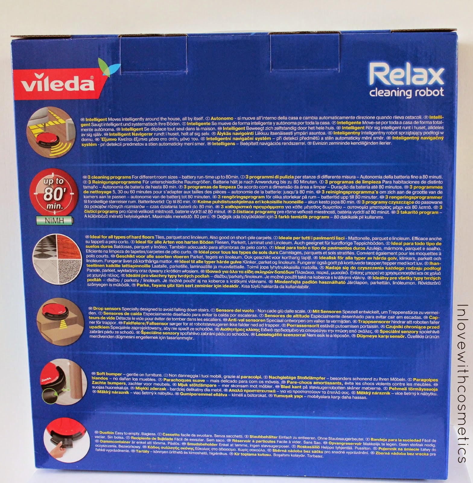 Die viele Arbeit, dann das Bloggen und das Vloggen und dann noch bisschen Freizeit nebenher - das möchte ich ungern mit saubermachen verbringen.Was sehr viel Zeit in Anspruch nimmt ist das Saugen.Mit unserer Futzi sollte man alle 2 Tage durchsaugen. Das kriege ich natürlich zeitlich nicht hin und dementsprechend sieht´s dann auf dem Boden aus. Wuuuaah da krieg ich die Krise!Also hab ich einfach mal mein Glück versucht.Erdbeerlounge hat einen Produkttest - man darf den Vileda Cleaning Roboter testen - 4 Wochen lang.Wuhu - ich hätte wirklich NIE gedacht, dass ich mit dabei bin, aber ich bin es!!!!Nachdem es Lieferschwierigkeiten gab, hab ich ihn nun eine Woche später endlich zuhause stehen.Ich nenne ihn "Robbi" - denn irgendwie hat er was liebevolles *g*Robbi muss sich nach der langen Reise erstmal ein bisschen ausruhen - 12 Stunden sollte er gemütlich an den Strom geschlossen werden, damit er neue Kraft tanken kann.Gesagt, getan. Snacks und leckere Getränke hab ich auch bereit gestellt, aber irgendwie will er nicht.Er ist wirklich im Tiefschlaf und stellt sich mental wahrscheinlich schon auf morgen ein ;o)Der Styroporkarton ging sehr schwer aus dem Pappkarton raus - ich finde das wirklich gut verpackt.Auf dem Karton selbst sind die wichtigsten Funktionen von Robbi aufgeführt.Dazu komme ich aber später.Was war alles mit im Paket drin?1. Robbi ♥