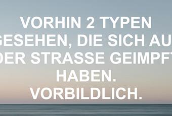 Auf Facebook teilen Vorige Folgende VORHIN 2 TYPEN GESEHEN, DIE SICH AUF DER... Autor des Artikels : istdaslustig Zum Original-Artikel VORHIN 2 TYPEN GESEHEN, DIE SICH AUF DER STRASSE GEIMPFT HABEN. VORBILDLICH. Hier geht es zum Artikel Mehr Lustiges auf www.istdaslustig.de Auf Facebook teilen Vorige Folgende Das könnte Ihnen gefallen Mehr