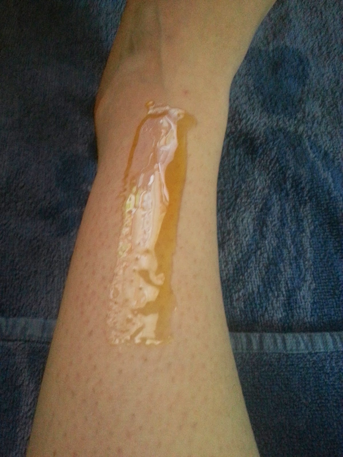 Vorher natürlich auf meinem Handgelenk getestet. Es war sehr dickflüssig, wie frischer Honig :) Die Temperatur war zunächst etwas ungewöhnlich aber keinesfalls zu heiß.