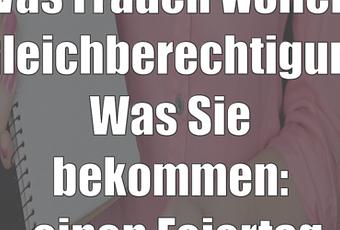 Auf Facebook teilen Vorige Folgende Was Frauen wollen: -Gleichberechtigung Was Sie... Autor des Artikels : istdaslustig Zum Original-Artikel Was Frauen wollen: -Gleichberechtigung Was Sie bekommen: -einen Feiertag Hier geht es zum Artikel Mehr Lustiges auf www.istdaslustig.de Auf Facebook teilen Vorige Folgende Das könnte Ihnen gefallen Mehr