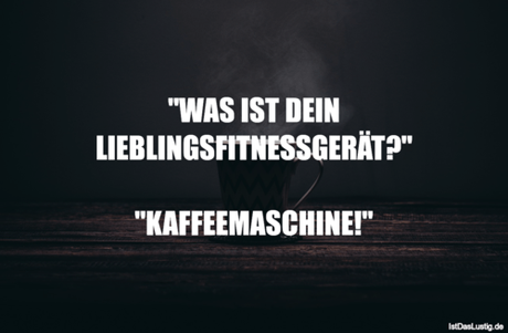 Auf Facebook teilen Vorige Folgende "WAS IST DEIN LIEBLINGSFITNESSGERÄT?"... Autor des Artikels : istdaslustig Zum Original-Artikel "WAS IST DEIN LIEBLINGSFITNESSGERÄT?" "KAFFEEMASCHINE!" Hier geht es zum Artikel Mehr Lustiges auf www.istdaslustig.de Auf Facebook teilen Vorige Folgende Das könnte Ihnen gefallen Mehr