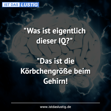 Auf Facebook teilen Vorige Folgende "Was ist eigentlich dieser IQ?" "Das ist die... Autor des Artikels : istdaslustig Zum Original-Artikel "Was ist eigentlich dieser IQ?" "Das ist die Körbchengröße beim Gehirn! Hier geht es zum Artikel Mehr Lustiges auf www.istdaslustig.de Auf Facebook teilen Vorige Folgende Das könnte Ihnen gefallen Mehr