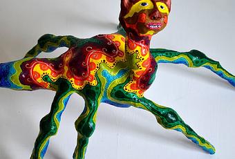 Acryl auf Figur aus Papmaché, Gips und Modelliermassen