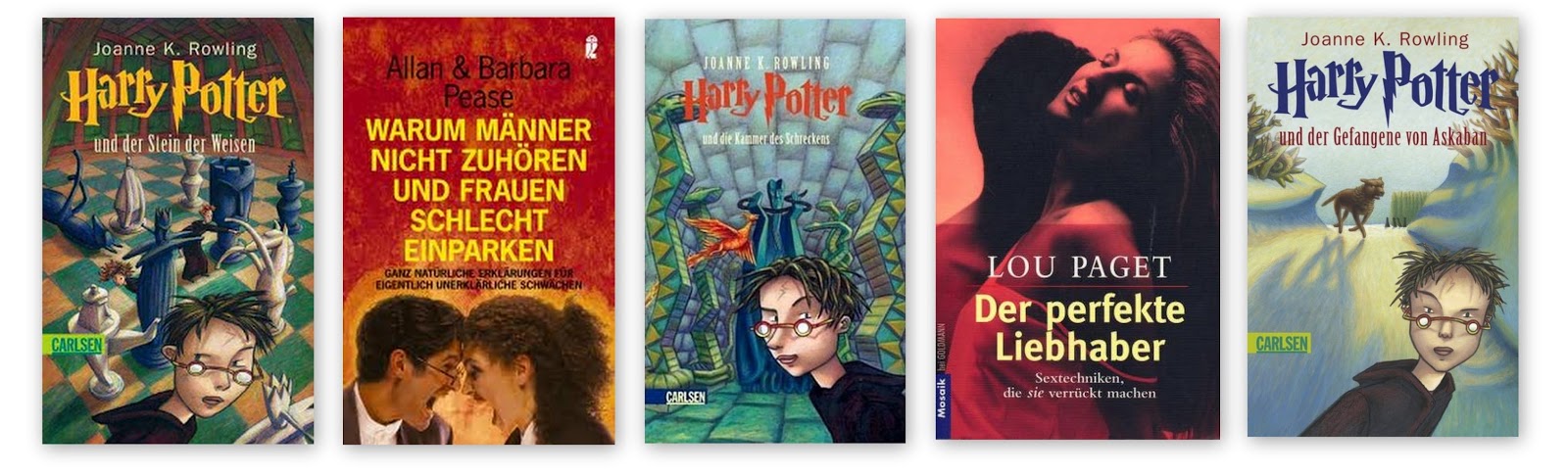 Wie ihr nur unschwer erkennen könnt, faszinierte im Jahr 2000 besonders Harry Potter die deutsche Nation. Hier sind Rang 1-5.