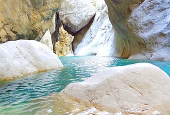 Wesentlich kälter als das Meerwasser der Türkischen Riviera bei Kemer und deshalb nur mit Neopren zu befahren ist das bezaubernd türkis-blaue Wasser des Göynük Canyons im Nationalpark Beydağları etwa 10 Kilometer nördlich von Kemer. Es werden zahlreiche Canyoning-Touren durch die Schlucht angeboten und die Sehenswürdigkeit lässt sich zu Fuß von Göynük aus in etwa einer Dreiviertelstunde erreichen. Durchschnittliche monatliche Wassertemperaturen bei Kemer im Jahresverlauf