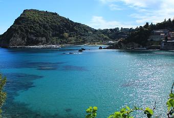 Das Foto zeigt das Meer bei Paleokastritsa. Die Zwillingsbucht Porto Timoni in der Nähe des Bergdorfes Afionas ist eine weitere obligatorische Sehenswürdigkeit bei jeder Korfu-Rundreise. In der Nähe des idyllischen Badestrandes hat man einen tollen Ausblick auf die Bucht von Agios Georgios. Durchschnittliche monatliche Wassertemperaturen auf Korfu im Jahresverlauf