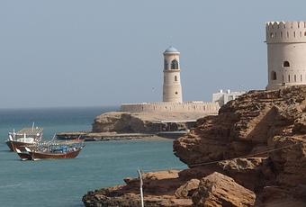 Fast am östlichsten Punkt vom Oman aber immer noch am Golf von Oman liegt die Küstenstadt Sur in der Nähe von Ras al-Dschinz, ein sehr beliebtes Ausflugsziel von Maskat aus und reich an Sehenswürdigkeiten. Von der Brücke, welche die Bucht überspannt, hat man einen guten Blick auf die Felsküste und den Leuchtturm Al Ayjah mit hellblauem Dach. Etwa 20 Kilometer nördlich liegt die Ruinenstadt Qalhat. Durchschnittliche monatliche Wassertemperaturen im Oman im Jahresverlauf