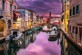 Als Lagunenstadt besteht das prägende Bild der italienischen Adriastadt Venedig aus Kanälen und kleinen Wasserstraßen (Rii) zwischen Gassen und Häuserschluchten, an deren Ränder Boote anliegen. Viele Brücken führen über die zahlreichen Kanäle. Der Markusdom mit dem Markusturm am Markusplatz ist Wahrzeichen und beliebte Sehenswürdigkeit der Stadt. Zu einer Besichtigungstour gehört oft auch die Glasbläserstadt Murano. Badestrände gibt es in Venedig direkt nicht, viele Besucher kommen aber aus den nahe gelegenen Badeorten Jesolo, Bibione und Caorle. Durchschnittliche monatliche Wassertemperaturen bei Venedig im Jahresverlauf