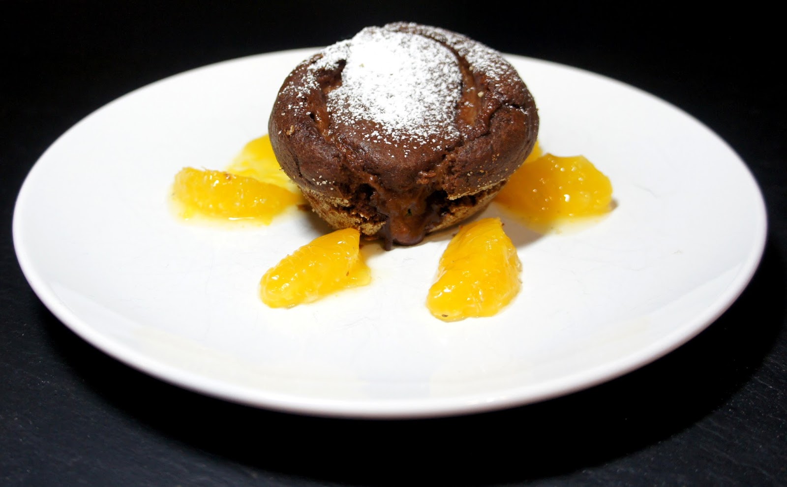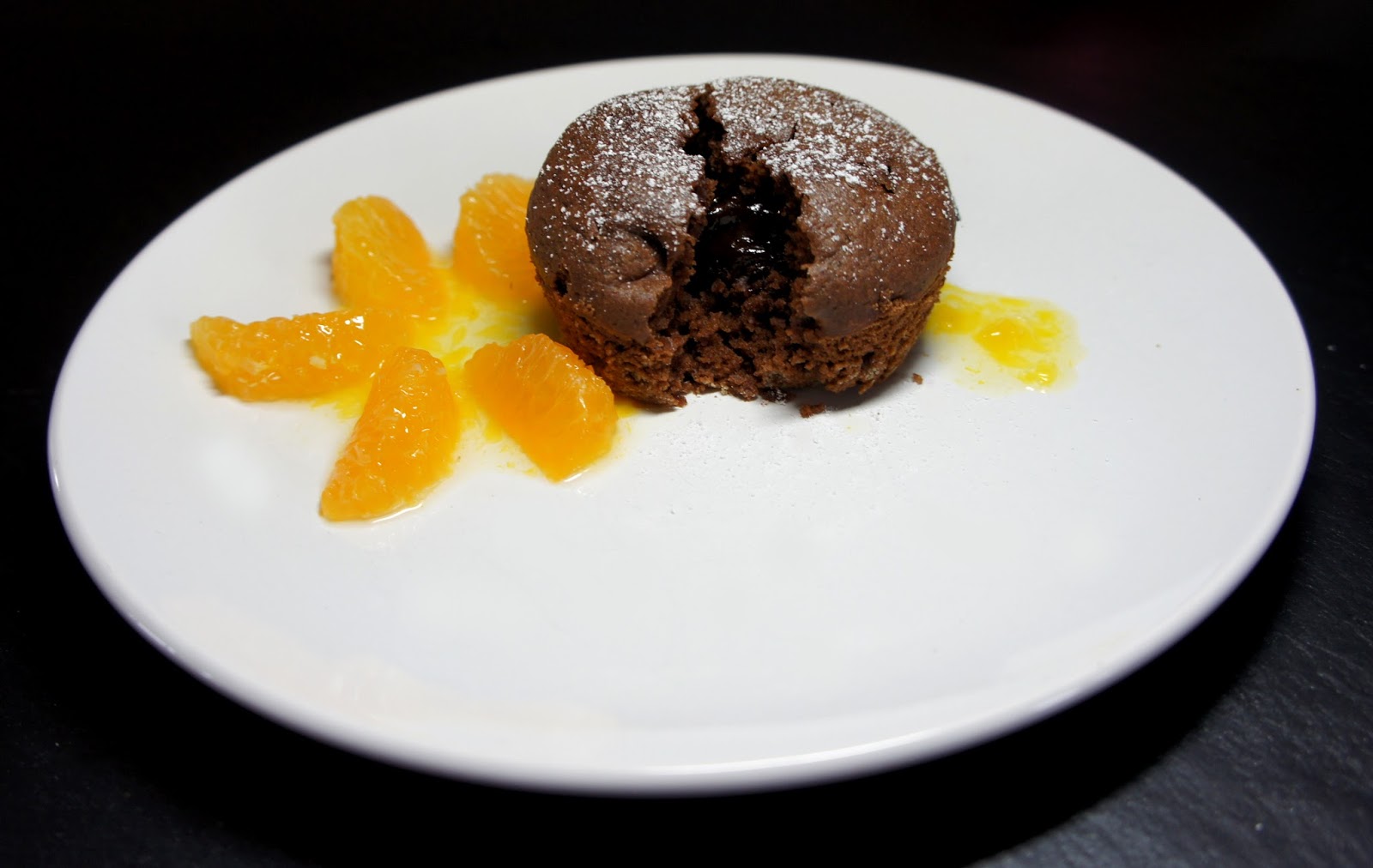 Nachspeise: Schokoladenkuchen mit Lebkuchen-Kern an Anis-Mandarinen