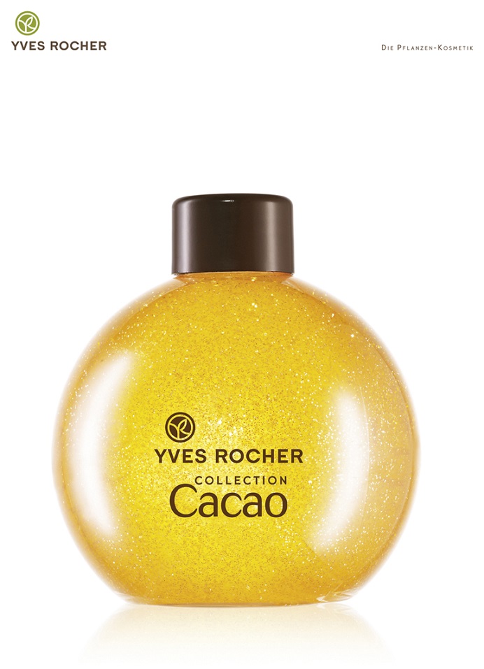 Die limitierte Pflegelinie Cacao & Orange aus dem Hause Yves Rocher pflegt den Körper auf sanfte Weise und hinterlässt einen köstlichen Duft nach warmer Schokolade und spritziger Orange auf der Haut. Die Pflegelinie Cacao & Orange besteht aus einem herrlich duftenden Duschgel, einer Feuchtigkeitsspendenden Handcreme, Flüssigseife für die Hände, einem Pflegenden Lippenbalsam, einem verführerischen Schimmernden Körperöl sowie einem Schimmernden Duschgelin festlicher Christbaum-Kugel-Optik.