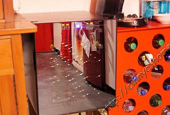 Innen sind 4 Regale aus Metall, die so geformt sind das jeweils 4 Flaschen sicher drin liegen. Größere Sektflaschen passen ganz knapp rein, aber es passen dann nur 2 in ein Regal wegen der Breite. Genauso ist es beim Boxbeutel. Bei uns gibt es viele Weine in dieser flachen, breiten Flasche.