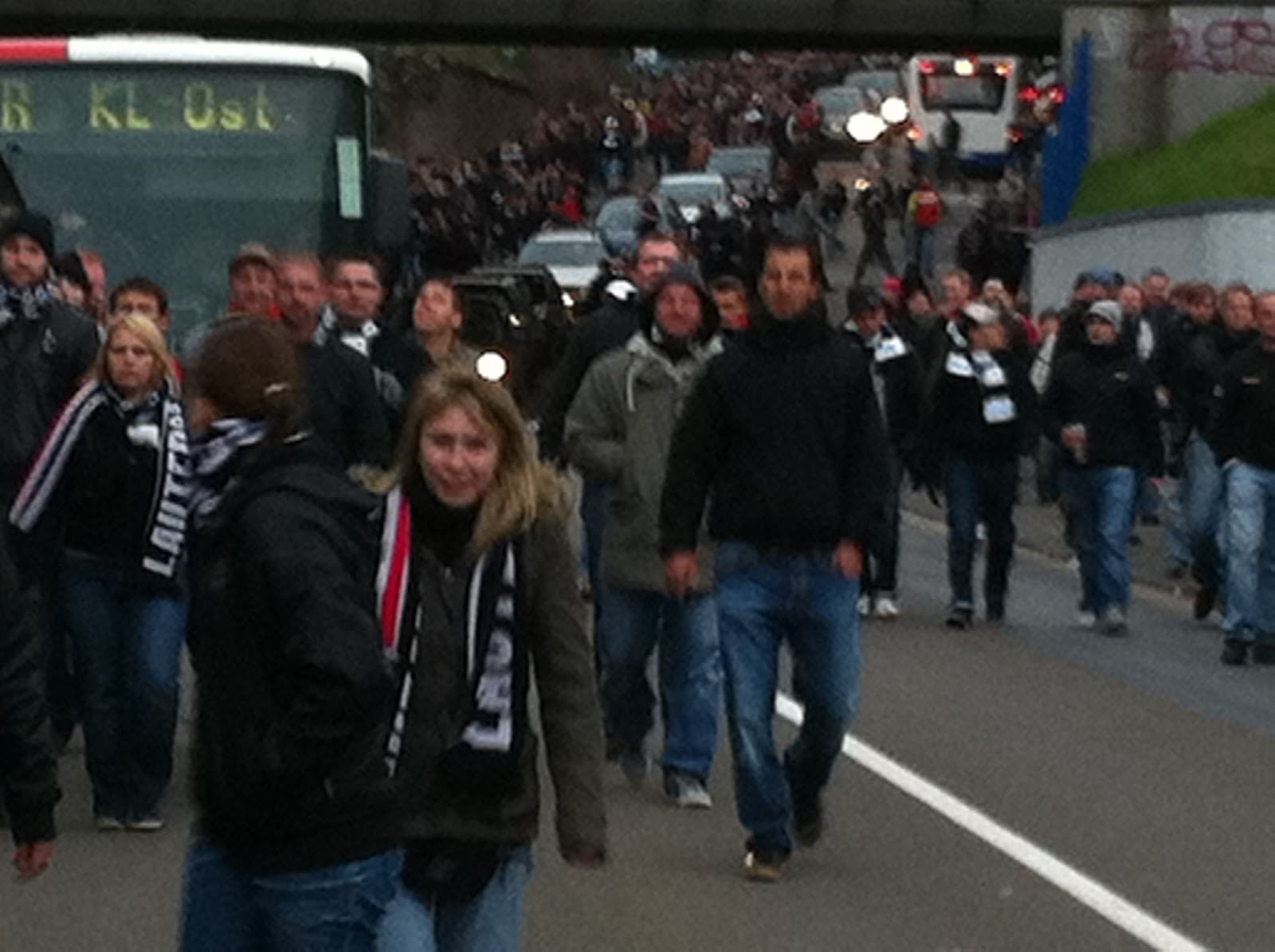 Nach meinem zuletzt besuchten und gewonnenen "Bundesliga"-Spiel (damals hieß das alles noch "Oberliga Süd", Südwest etc) der Eintracht Frankfurt im Waldstadion vor immerhin 50 Jahren, und nachdem der FCK wieder in der 1.Bundesliga spielt (Fan-Motto: "Nie mehr 2. Liga") hatte mich Ursulas Familie zum FCK-Heimspiel gegen genau meinen einstigen Jugendverein eingeladen.Natürlich hab ich mich in meiner sprichwörtlichen Planungsmanie generalstabsmässig (wenn dieser nicht-pazifistische Ausdruck mal hier gestattet sein soll) auf dieses Event gestern vorbereitet: "Meinen" Fan-Zuschauerblock 22.1 auf dem virtuellen Stadion der FCK-homepage online angesehen (dort kannst du online von jedem Block aus schon vorher die entsprechende Sicht aufs Spielfeld vortesten). Ich las über den Betzenberg: "Ein Ort grandioser Erfolge, aber auch bitterer Niederlagen". Dann hab ich mir online im FCK-Shop natürlich einen rot-weissen Fan-Schal gekauft mit der Aufschrift "Unzerstörbar". Denn ich wußte ja: Ein Schlüsselspiel für den FCK. Also: "Ein Sieg muß her".Gestern mittag machte sich dann also unsere 3-Generationen-Minifangruppe von Neustadt nach Kaiserslautern auf. Die ganze Region war auf den Beinen. "De Palz hat zwee Sache", hatte mich Ursula schon früher aufgeklärt, "de Wein und de Betze" (Rheinland-Pfalz: das einzigste Bundesland mit einem Weinminister). An Fan-Kiosken vorbei, umringt von vielen FCK- und einigen Frankfurt-Fans ging´s schrittweise hoch hinauf auf den Betzen-Berg ("Deutschlands höchstes Stadion").Zeitintensive Sicherheitskontrollen, über 800 Polizisten (Frankfurter Radikale hatten Randale angesagt). Endlich im Stadion. Rauf zu unserem Fan-Block und dann konnte ich mich der Betzenberg-Atmossphäre nicht mehr entziehen. Die ohrenbetäubend Lärmkulisse. Das Meer von rot-weißen Fahnen. Am schönsten war der Blick auf die West-Fankurve, wo auf riesigen Transparenten die drei einfachen klaren Worte zum FCK zu lesen waren, ganz nach meinem Geschmack: "Chaotisch - Fanatisch - Laut(ern)". Damit war alles gesagt. Die Stadionwände dröhnten von der Anfeuerungsrufen der Fans, Konfetti-Kanonen ließen Millionen Papierschnitzel auf uns runterregnen, nach jedem Tor Kanonschläge (die illegal ins Stadion eingeschmuggelt worden waren). Zum Schluß war die Luft durch Signalraketen so rauchig, dass meine iPhone-Bilder immer unschärfer wurden. Ja, da brannte der Betze wirklich. Auf dem Spielfeld gings allerdings leider nicht so glücklich für den FCK zu. Dabei ist Fußball doch so einfach..., wenn man unserem legendären Bundessepp glauben darf: "Männer: Spiele, gucke, schieße". In der ersten Halbzeit spielte der FCK schön offensiv, war ein gleichwertiger Gegner gegen die Eintracht. Angesichts des prekären Tabellenplatzes der Rot-Weißen - leider nicht weit vom Relegationplatz entfernt - auch dringend angezeigt. Es gab gute Torchancen "für uns", die aber alle verhastet oder verstolpert wurden. Dann ein Elfmeter für den FCK. Der Gefoulte schießt selber - entgegen alter Fußballweisheit. Zu unkonzentriert, zu soft, der Frankfurter Keeper kann halten. Ein verschossener Elfer ist wie ein Gegentor, und nur eine Minute vor der Halbzeit, psychologisch schlimmer geht´s nicht: Das erste Tor für die Eintracht. Während wir uns in den Stadionhinterhöfen mit viel Bier und Bratwurst stärkten, versuchte der FCK-Trainer sein Team in der Kabine wieder aufzurichten. In 45 Minuten kann man ja ein 0:1 doch noch locker drehen. Aber nicht gestern die Kaiserlauterner. Zu ängstlich, zu unkonzentriert, kaum noch rausgespielte Chancen. Hat da ein Aufsteiger einfach Angst vor der 1. Liga? Und die Eintracht wiederum bewies demgegenüber wahres Profitum: Wenig Chancen, nur ein paar Konter, aber die saßen: erst 0:2 und später sogar 0:3. Der Frankfurter Fan-Block, nur 100 Meter von uns enfernt, war aus dem Häuschen. Nach jedem Tor sprangen die Frankfurter Spieler über die Absperrung und klatschen die begeisterten Fans ab. Ja, als das Spiel abgepfiffen wurde, war klar: Der FCK hat leider ein wichtiges Heimspiel ohne Wenn und Aber vergeigt, mutlos, phantasielos in der zweiten Halbzeit. Jetzt wird´s für die Roten Teufel eng. Nächsten Samstag auswärts gegen Freiburg. Sicher keine leichtere Aufgabe als die gestern gegen Frankfurt. Wenn also nicht bald eine nachhaltige Wende nach vier Niederlagen hintereinander passiert, wird der FCK bald auf einem Abstiegsplatz landen. Aber bis zum Saisonende kann ja noch viel passieren. Also sind wir - zwar etwas stiller aber doch nicht völlig resigniert - wieder runter vom Betzenberg gestiegen, haben auch als gute Verlierer den Eintracht-Fans fröhlich zugewunken. Einer von denen - ein ganz Lieber- griff spontan meinen FCK-Schal mit beiden Händen und dröhnte mir voll "Drei-Null!" ins Ohr. Das hab ich ihm gegönnt. Ursulas Familie hat mich auf der Heimfahrt lieb getröstet. Sie hätte mir gerne ne bessere Partie bei meinem Betze-Einstand präsentiert. Aber ich hab sie umgekehrt trotzig gegengetröstet: Niederlagen schweißen zusammen. Nicht im Sieg, sondern in der Niederlage zeigt sich der wahre FCK-Anhänger. Also: Mein rot-weißer Fan-Schal wird weiter angezogen. Und ich hab schon mal in meinem Kalender notiert, wann das letzte FCK-Heimspiel in der Saison 2010/2011 stattfindet.