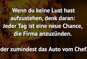 Auf Facebook teilen Vorige Folgende Wenn du keine Lust hast aufzustehen, denk... Autor des Artikels : istdaslustig Zum Original-Artikel Wenn du keine Lust hast aufzustehen, denk daran: Jeder Tag ist eine neue Chance, die Firma anzuzünden. Oder zumindest das Auto vom Chef... Hier geht es zum Artikel Mehr Lustiges auf www.istdaslustig.de Auf Facebook teilen Vorige Folgende Das könnte Ihnen gefallen Mehr