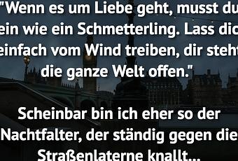 "Wenn es um Liebe geht, musst du sein wie ein Schmetterling. Lass dich einfach vom Wind treiben, dir steht die ganze Welt offen."