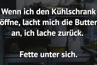 Auf Facebook teilen Vorige Folgende Wenn ich den Kühlschrank öffne, lacht mich die... Autor des Artikels : istdaslustig Zum Original-Artikel Wenn ich den Kühlschrank öffne, lacht mich die Butter an‚ ich lache zurück. Fette unter sich. Hier geht es zum Artikel Mehr Lustiges auf www.istdaslustig.de Auf Facebook teilen Vorige Folgende Das könnte Ihnen gefallen Mehr