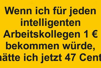Auf Facebook teilen Vorige Folgende Wenn ich für jeden intelligenten... Autor des Artikels : istdaslustig Zum Original-Artikel Wenn ich für jeden intelligenten Arbeitskollegen 1 € bekommen würde, hätte ich jetzt 47 Cent. Hier geht es zum Artikel Mehr Lustiges auf www.istdaslustig.de Auf Facebook teilen Vorige Folgende Das könnte Ihnen gefallen Mehr