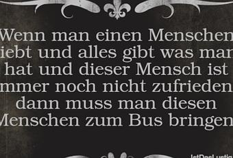 Auf Facebook teilen Vorige Folgende Wenn man einen Menschen liebt und alles gibt... Autor des Artikels : istdaslustig Zum Original-Artikel Wenn man einen Menschen liebt und alles gibt was man hat und dieser Mensch ist immer noch nicht zufrieden, dann muss man diesen Menschen zum Bus bringen! Hier geht es zum Artikel Mehr Lustiges auf www.istdaslustig.de Auf Facebook teilen Vorige Folgende Das könnte Ihnen gefallen Mehr