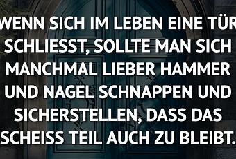 Auf Facebook teilen Vorige Folgende WENN SICH IM LEBEN EINE TÜR SCHLIESST, SOLLTE... Autor des Artikels : istdaslustig Zum Original-Artikel WENN SICH IM LEBEN EINE TÜR SCHLIESST, SOLLTE MAN SICH MANCHMAL LIEBER HAMMER UND NAGEL SCHNAPPEN UND SICHERSTELLEN, DASS DAS SCHEISS TEIL AUCH ZU BLEIBT. Hier geht es zum Artikel Mehr Lustiges auf www.istdaslustig.de Auf Facebook teilen Vorige Folgende Das könnte Ihnen gefallen Mehr