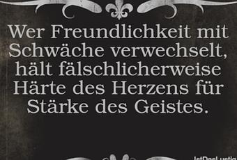 Auf Facebook teilen Vorige Folgende Wer Freundlichkeit mit Schwäche verwechselt,... Autor des Artikels : istdaslustig Zum Original-Artikel Wer Freundlichkeit mit Schwäche verwechselt, hält fälschlicherweise Härte des Herzens für Stärke des Geistes. Hier geht es zum Artikel Mehr Lustiges auf www.istdaslustig.de Auf Facebook teilen Vorige Folgende Das könnte Ihnen gefallen Mehr