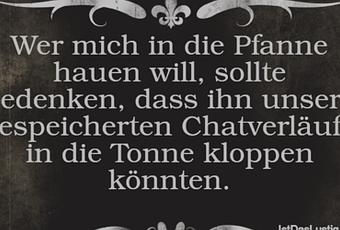 Auf Facebook teilen Vorige Folgende Wer mich in die Pfanne hauen will, sollte... Autor des Artikels : istdaslustig Zum Original-Artikel Wer mich in die Pfanne hauen will, sollte bedenken, dass ihn unsere gespeicherten Chatverläufe in die Tonne kloppen könnten. Hier geht es zum Artikel Mehr Lustiges auf www.istdaslustig.de Auf Facebook teilen Vorige Folgende Das könnte Ihnen gefallen Mehr