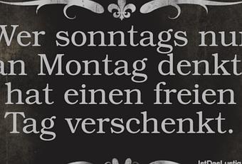 Auf Facebook teilen Vorige Folgende Wer sonntags nur an Montag denkt, hat einen... Autor des Artikels : istdaslustig Zum Original-Artikel Wer sonntags nur an Montag denkt, hat einen freien Tag verschenkt. Hier geht es zum Artikel Mehr Lustiges auf www.istdaslustig.de Auf Facebook teilen Vorige Folgende Das könnte Ihnen gefallen Mehr