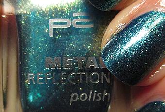 Der Lack ist, wie der Name schon sagt, metallisch und mit vieeeel Glitzer. Der Lack hat die Farbe Petrol, aber goldenen Glitzer. Sieht gut aus... doch Moment! Kenne ich da keinen Dupe??? Ich glaube schon!