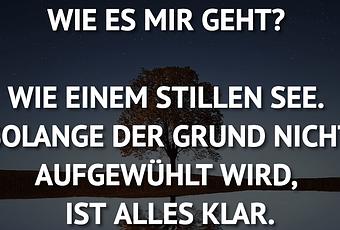 Auf Facebook teilen Vorige Folgende WIE ES MIR GEHT? WIE EINEM STILLEN SEE.... Autor des Artikels : istdaslustig Zum Original-Artikel WIE ES MIR GEHT? WIE EINEM STILLEN SEE. SOLANGE DER GRUND NICHT AUFGEWÜHLT WIRD, IST ALLES KLAR. Hier geht es zum Artikel Mehr Lustiges auf www.istdaslustig.de Auf Facebook teilen Vorige Folgende Das könnte Ihnen gefallen Mehr