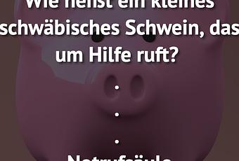 Auf Facebook teilen Vorige Folgende Wie heißt ein kleines schwäbisches Schwein, das... Autor des Artikels : istdaslustig Zum Original-Artikel Wie heißt ein kleines schwäbisches Schwein, das um Hilfe ruft? . . . Notrufsäule Hier geht es zum Artikel Mehr Lustiges auf www.istdaslustig.de Auf Facebook teilen Vorige Folgende Das könnte Ihnen gefallen Mehr