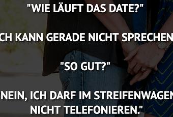 Auf Facebook teilen Vorige Folgende "WIE LÄUFT DAS DATE?" "ICH KANN GERADE NICHT... Autor des Artikels : istdaslustig Zum Original-Artikel "WIE LÄUFT DAS DATE?" "ICH KANN GERADE NICHT SPRECHEN." "SO GUT?" "NEIN, ICH DARF IM STREIFENWAGEN NICHT TELEFONIEREN." Hier geht es zum Artikel Mehr Lustiges auf www.istdaslustig.de Auf Facebook teilen Vorige Folgende Das könnte Ihnen gefallen Mehr