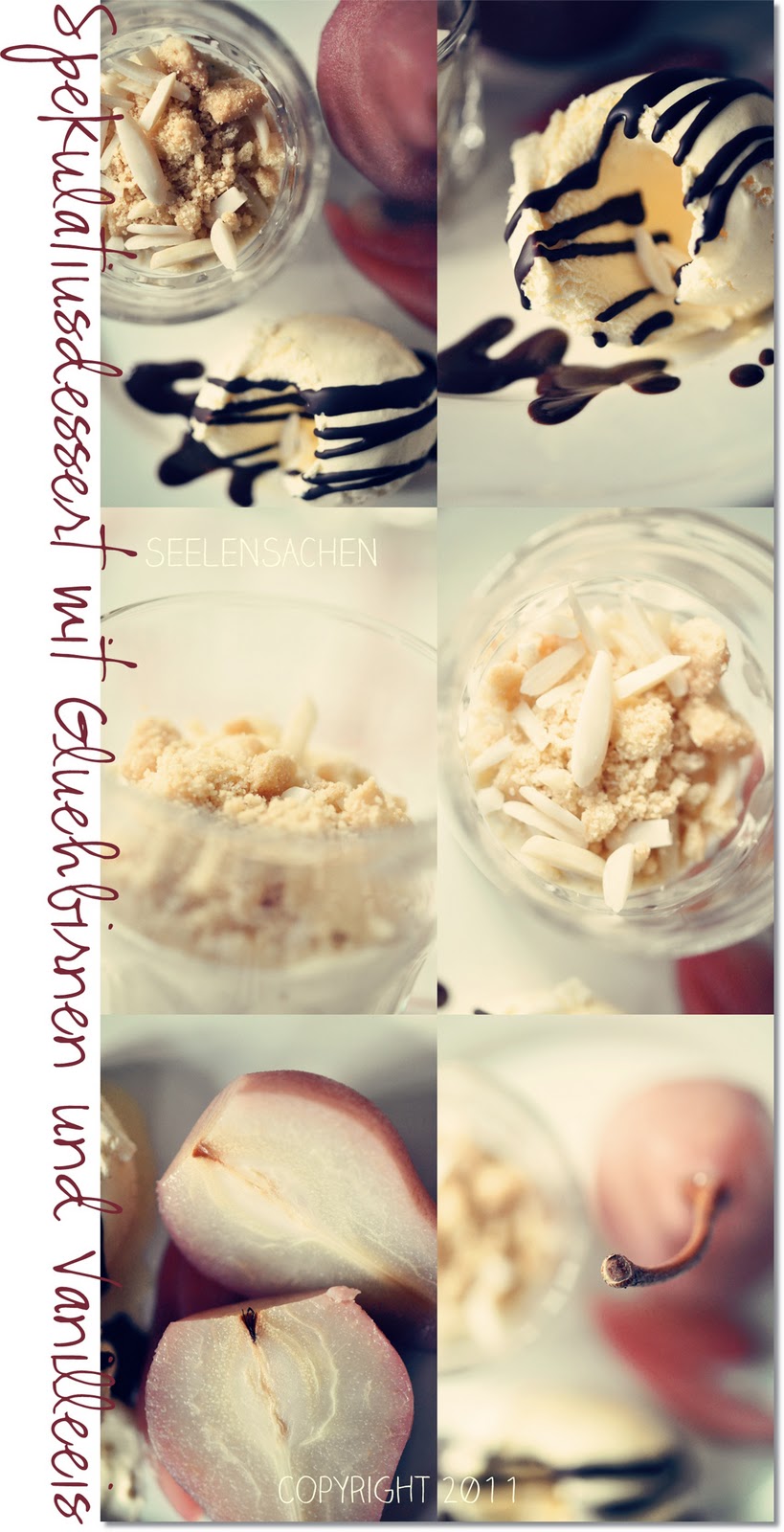 Das Ganze dann ein paar Stunden in den Kühlschrank und kurz vorm Servieren dann je ein Dessertglas, die aufgeschnittenen Birnen, das Eis und die Schokosauce sowie einen Tupfer (vom Lieblingsmann von Hand aufgeschlagenem Schlagobers ;-) ) angerichtet.