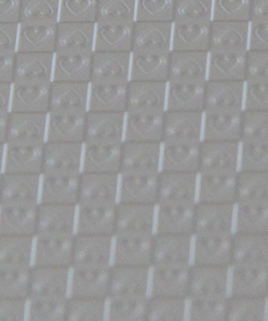 Die Oberfläche ist mit einer, auf den ersten Blick unauffälligen Herzchen Textur versehen und macht